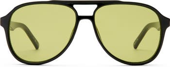 A double bridge and classic aviator frames enhance the retro allure of these UV-protective sunglasses that are perfect for everyday wear..