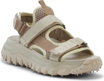A toothy Vibram® Megagrip traction sole and Moncler's carbon-fiber chassis put surefooted stability under every step in this hiking sandal equipped with adjustable straps for a secure, custom fit.