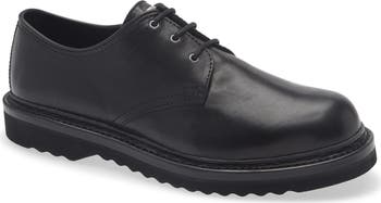 Crafted from supple Italian leather, this round-toe derby features a cushioned insole and thick treaded sole made from Vibram® vulcanized rubber.