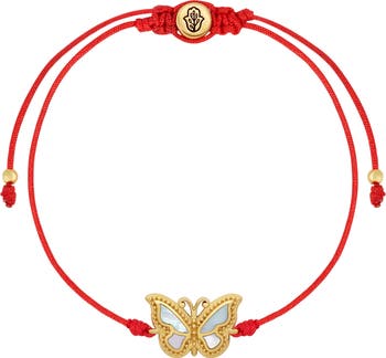 Transcendent Guide Mother of Pearl Butterfly Red String Bracelet