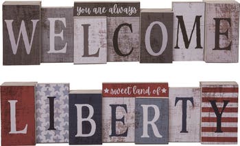 - Versatile tabletop decor that enhances your springthemed home with a cheerful welcome or patriotic liberty message, perfect for entryways, mantels, or seasonal displays.