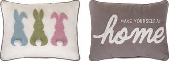- Celebrate the spring season with the Transpac 16" Multicolor Reversible Embroidered Bunny Pillow, perfect for adding a festive touch to your home decor and making a delightful gift for loved ones.