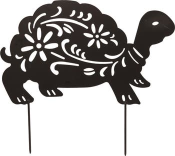 - Enhance your spring garden with the Transpac 18.25" Black Spring Turtle Critter Cutout Yardstake, a charming decorative metal stake perfect for gift giving and seasonal outdoor decor.