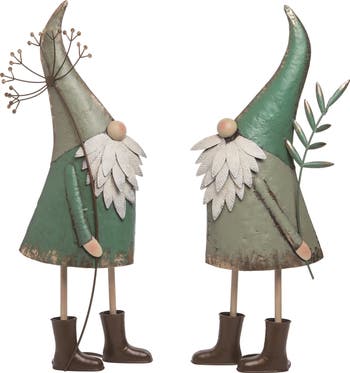 - Enhance your spring decor with the 27.5" Transpac Metal Mystic Gnome Statuette, crafted from durable A6106DS metal, featuring a vibrant green finish, perfect for indoor tabletop display.