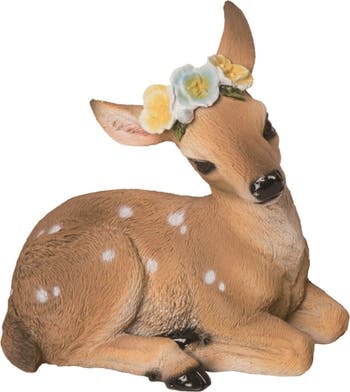- Perfect for adding a whimsical touch to your spring decor, this charming 4.9" brown fawn figurine is ideal for tabletops, shelves, or as a centerpiece in any indoor space.