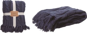 - Cozy and stylish, the Transpac Polyester Blue Everyday Chunky Knitted Midnight Throw features a soft, durable polyester material, perfect for indoor use, with charming tassels and a generous size of 50" x 60".