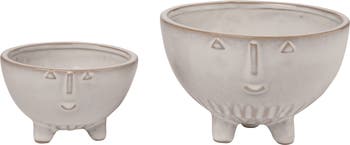 - Brighten up your spring decor with the Transpac Ceramic Smiley Bowl Set, featuring two 5.75" white bowls made from durable ceramic, perfect for indoor tabletop use and easy to clean with a simple wipe.
