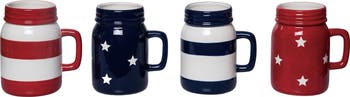 Celebrate your love for the stars and stripes with the Ceramic Mason Jar Mug Stars/Stripes Set of 4. Perfectly designed for patriotic gatherings, these vibrant mugs add a festive touch to any occasion, whether you're hosting a barbecue or enjoying a quiet evening at home. Each mug is crafted from durable ceramic, ensuring they are both dishwasher and microwave safe for your convenience. With a charming mason jar shape, these mugs not only serve beverages but also double as delightful decorative pieces. Their multicolored design enhances your home decor while making them an ideal gift for friends and family who appreciate a touch of Americana. Elevate your table setting and toast to good times with this fun and functional set!