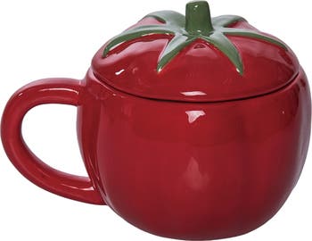 Dolomite 10 Oz Tomato Mug with Lid Red and Green for Spring Serving and Entertaining