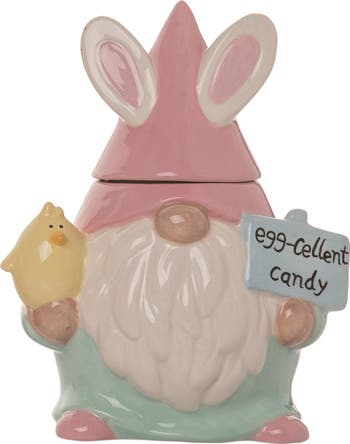 - Perfect for adding a whimsical touch to your spring decor, this pink gnome candy jar is ideal for holding treats on your tabletop or as a charming centerpiece for Easter celebrations.