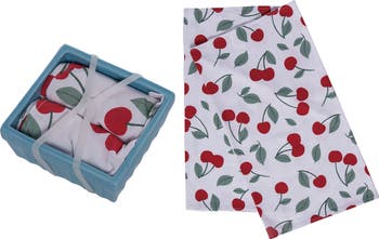Dolomite Berry Basket with Tea Towels Set of 3 Multicolored for Spring Serving and Entertaining