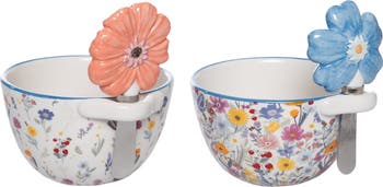 Elevate your spring gatherings with the delightful Dolomite Bowl with Floral Spreader Set of 2. This charming tabletop bowl set features a vibrant multicolored design that adds a cheerful touch to any table setting. Crafted from durable ceramic, each bowl is perfect for serving salads, snacks, or decorative items, while the included floral spreader makes it easy to serve spreads or dips. With a generous capacity of 10, these bowls are ideal for entertaining guests or adding a pop of color to your home decor. Measuring 5.5 inches in length, 4.75 inches in width, and 3.5 inches in height, they are perfectly sized for both casual and festive occasions. Whether you're hosting a spring brunch or looking for a thoughtful gift, this set combines functionality with a playful aesthetic.