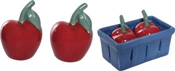 Dolomite Cherry Salt and Pepper Shakers in Basket Set of 3 Multicolored for Spring Serving and Entertaining