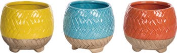 Brighten up your garden or indoor space with the Dolomite Colorful Basket Weave Planter Set of 3. This charming set features a delightful multicolored design, perfect for adding a pop of color to any decor. Crafted from durable ceramic, these planters are not only visually appealing but also functional, making them ideal for showcasing your favorite plants or flowers. Each planter measures 4.65 inches in length and width, with a height of 4.25 inches, making them versatile enough for various settings, from window sills to patios. Whether you're looking to enhance your home decoration or searching for a thoughtful gift, this planter set is a fantastic choice for springtime gardening and beyond.