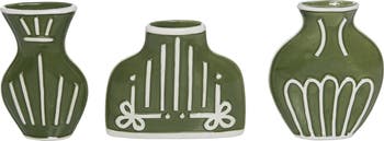 Enhance your spring decor with the charming Dolomite Flat Vases Set of 3, designed to bring a touch of nature indoors. Crafted from durable ceramic, these vases feature a lovely green hue that beautifully complements fresh flowers or stands out as a decorative statement on their own. Each vase measures 4.15 inches in length, 1.1 inches in width, and 5.1 inches in height, making them ideal for various arrangements or as a centerpiece on your dining table or mantel. Perfect for gift giving or home decoration, this set is versatile enough to fit seamlessly into any style, from modern to rustic. Elevate your space with these delightful vases that celebrate the beauty of spring.