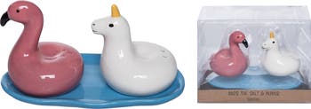 Add a splash of fun to your dining table with the Dolomite Pool Floatie Salt and Pepper Set of 3. This vibrant collection features delightful pool floatie designs in a multicolored palette, perfect for bringing a touch of whimsy to any meal. Crafted from durable ceramic, this set not only serves its functional purpose but also makes for an eye-catching centerpiece or collectible item. Each piece is dishwasher and microwave safe, ensuring easy care and versatility for everyday use or special occasions. Ideal for spring gatherings, this charming set is a fantastic gift for friends and family who love to entertain or decorate their homes with playful accents.
