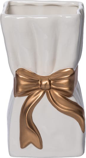 Elevate your home decor with the elegant Dolomite Ribbon Gold Vase, a stunning piece perfect for adding a touch of sophistication to any space. Crafted from high-quality ceramic, this decorative vase features a chic white and gold design that beautifully complements a variety of interior styles. Measuring 4.53 inches in length, 3.94 inches in width, and 8.07 inches in height, it serves as an eye-catching centerpiece for your dining table or a stylish accent on a shelf. Ideal for showcasing fresh flowers or as a standalone decorative item, the Dolomite Ribbon Gold Vase is not only functional but also a perfect gift for special occasions, especially during Valentine's season. With its luxurious finish and versatile appeal, this vase is a must-have for anyone looking to enhance their home with elegance and charm.