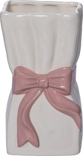 Enhance your home decor with the charming dolomite ribbon pink vase, a delightful addition perfect for Valentine's Day or any occasion that calls for a touch of romance. This decorative vase, featuring a lovely white and pink color scheme, beautifully showcases your favorite blooms or stands elegantly on its own as a statement piece. Crafted from durable ceramic, it combines functionality with style, making it an ideal choice for gift giving or brightening up your living space. With dimensions of 4.53 inches in length, 3.94 inches in width, and 8.07 inches in height, this vase is perfectly sized for tabletops, shelves, or mantels. Whether you're celebrating a special moment or simply looking to elevate your home's aesthetic, the dolomite ribbon pink vase is sure to impress.