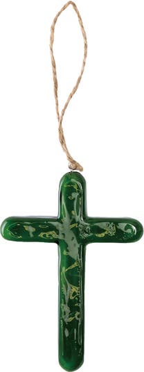 - Beautifully crafted from glass, the Transpac Green Cross with Hanger is a stunning wall art decoration perfect for spring, featuring a vibrant green color and ideal for indoor use.
