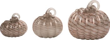 Glass Pumpkin Set of 3 Brown Harvest Swirl Decorative Figurines