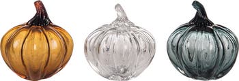 - Set of 3 beautifully crafted glass pumpkins in clear, green, and amber colors, perfect for adding a touch of autumn charm to your home decor.