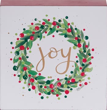 - Charming MDF Joy Wreath Block adds a festive touch to your holiday decor with its vibrant multicolor design.
