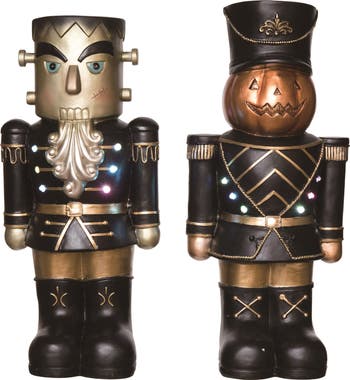 Transform your Halloween decor with the enchanting Transpac Resin Light Up Halloween Nutcracker Decor. This delightful decorative object features a whimsical design that captures the spirit of the season, making it a perfect addition to your tabletop display. Crafted from durable resin, this multicolored nutcracker is prelit to create a warm and inviting glow, adding a festive touch to your indoor space. Ideal for Halloween parties or as a charming centerpiece, it also makes a thoughtful gift for friends and family. Easy to maintain, simply spot or wipe clean to keep it looking its best. Embrace the Halloween spirit with this unique and eye-catching decoration that is sure to impress your guests and elevate your holiday celebrations.