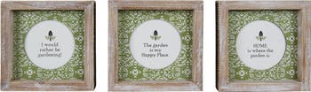 Enhance your spring decor with the charming MDF/Wood Framed Decor Garden Set of 3. This delightful collection features vibrant, multicolored designs that bring a touch of whimsy to any space. Each decorative sign is crafted from durable wood, ensuring that they not only look beautiful but also stand the test of time. Measuring 5.91 inches in both height and length, and 1.5 inches in width, these signs are perfectly sized for various display options, whether hung on a wall or placed on a shelf. Ideal for gift giving or as a cheerful addition to your home decoration, this set is sure to brighten up your living area or garden. Celebrate the season with these playful accents that embody the spirit of spring.