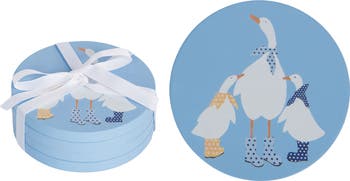 MDF Ducks in Boots Coasters Set of 4 Blue and White and Yellow for Spring Serving and Entertaining