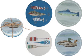 Enhance your home decor with the vibrant MDF Retreat Coasters Set of 4, perfect for adding a splash of color to your living space this spring. Crafted from durable wood, these coasters feature a delightful multicolored design that not only protects your surfaces but also serves as a charming decorative element. Measuring 4.72 inches in length and width, and 1.5 inches in height, they are the ideal size for holding your favorite drinks while preventing unsightly rings on your furniture. This set is perfect for gift giving or as a stylish addition to your own home, making it a versatile choice for any occasion. Celebrate the season with these functional yet artistic coasters that blend practicality with aesthetic appeal.