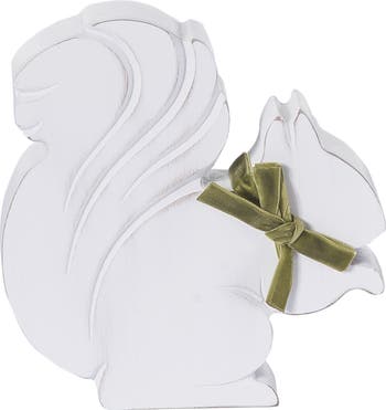 - Charming MDF squirrel decor adds a whimsical touch to your fall and harvest decorations.