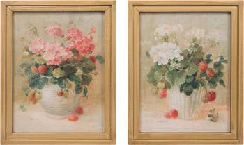 MDF Strawberry Canvas Art Set of 2 Spring Wall Decor for Home Decoration and Wood Wall Art