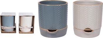 Medium Terracotta Etched Self Water Planter Set of 2 Multicolored Indoor Tabletop Home Decor Gifts