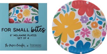 Melamine Jumbo Floral Appetizer Plates Set of 4 Tabletop Plate Multicolored for Spring Serving and Entertaining