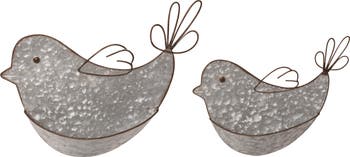 - Enhance your spring decor with the Transpac Metal 13.75" Silver Spring Hanging Bird Container Wall Decor Set, featuring two beautifully crafted metal bird containers that add a charming touch to your indoor walls.