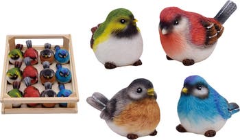 Add a splash of color to your spring decor with the Mini Resin Bright Rainbow Birds In Crate Set of 12. These charming bird figurines, crafted from durable resin, are perfect for brightening up any space in your home. Each set features an array of multicolored birds nestled in a decorative crate, making them an eye-catching centerpiece for your table or a delightful addition to your shelves. Ideal for gift giving or enhancing your home decoration, these whimsical birds bring a cheerful vibe that celebrates the beauty of nature. Whether you're looking to liven up your living room or searching for the perfect gift, this set of bird figurines is sure to bring joy and warmth to any setting.