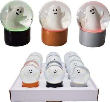 • Features three unique designs of mini resin ghost light up globes perfect for Halloween decor.
