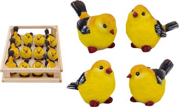 Add a touch of whimsy to your home decor with the Mini Resin Goldfinch Birds In Crate Set of 12. These charming bird figurines are crafted from durable resin and come in a delightful array of multicolored designs, perfect for celebrating the vibrant spirit of spring. Each bird is intricately detailed, making them ideal for display on shelves, tables, or as part of a seasonal centerpiece. The set is beautifully presented in a crate, making it a thoughtful gift for bird lovers or a unique addition to your own collection. Whether you're decorating for spring or looking for a cheerful accent year-round, these goldfinch figurines will bring joy and color to any space.