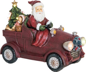 Transpac Multicolor Light Up Musical Santa Wagon Decorative Resin Figurine, Alternate, color, Red