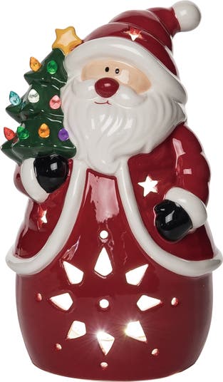 Transpac Multicolor Light Up Santa Tree Ceramic Decorative Figurine, Alternate, color, Red