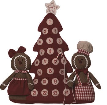 Transpac Multicolor Plush Gingerbread Advent Calendar Soft Polyester Decor, Alternate, color, Brown