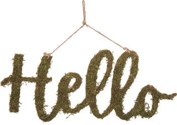 - Celebrate the spirit of spring with the Transpac Natural Material "Hello" Wall Art, featuring a charming cursive script and faux moss design, perfect for gift giving and enhancing indoor decor during the season.