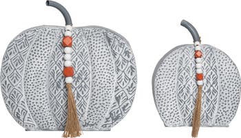 - Elevate your fall decor with the Transpac Metal OffWhite Harvest Patterned Pumpkins Set of 2, perfect for gift giving this season, featuring a stylish design that adds a touch of autumn charm to any indoor tabletop.