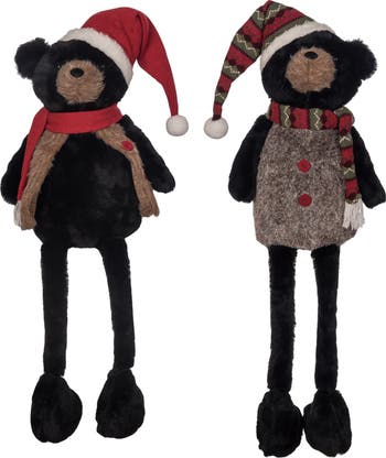 • Set of 2 plush black bear shelf sitters adds a charming touch to your home decor.