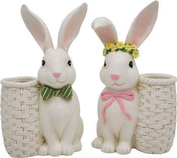 Add a touch of whimsy to your spring decor with the Resin Bunny with Vase Set of 2. This delightful decorative vase set features charming bunnies crafted from durable resin, each showcasing a vibrant multicolored finish that brings a playful spirit to any space. Standing at 8.5 inches tall and measuring 5 inches in length and 4 inches in width, these vases are perfect for displaying fresh flowers or seasonal arrangements, making them a versatile addition to your Easter celebrations or everyday home decoration. Ideal for gift giving, this set is sure to bring smiles and warmth to family and friends alike. Embrace the joy of the season with the Resin Bunny with Vase Set, where functionality meets festive charm.