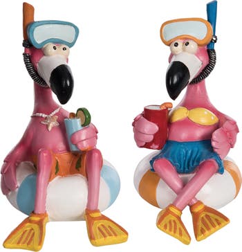 Add a touch of whimsy to your decor with the Resin Flamingo Figurines Set of 2, perfect for brightening up your springtime displays. These charming figurines are crafted from durable resin, showcasing a delightful multicolored design that captures the playful essence of these beloved birds. With dimensions of 3.5 inches in length, 5.5 inches in width, and 5.75 inches in height, they are ideal for tabletops, shelves, or as eye-catching accents in any room. Whether you're looking to enhance your home decoration or searching for a unique gift, this set of flamingo figurines brings a cheerful vibe to any space. Celebrate the season with these vibrant pieces that embody the spirit of spring and add a fun flair to your surroundings.