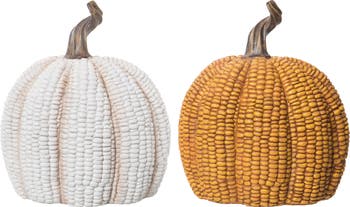 - Charming set of 2 resin corn pumpkin figurines perfect for fall and harvest decor. Vibrant multicolored design adds a festive touch to your indoor space. Ideal for decoration, gift giving, or as thoughtful hostess gifts during the holiday season Easy to maintain with simple spot or wipe clean care instructions