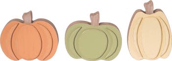 • Set of 3 decorative MDF pumpkin sculptures perfect for fall and harvest season.