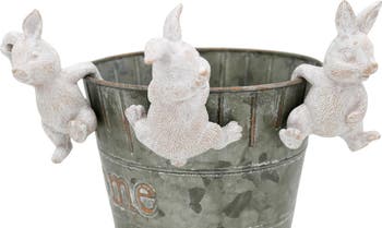Add a whimsical touch to your spring decor with the Resin Bunny Plant Hangers Set of 3. These charming garden pot hangers are crafted from durable resin, featuring an adorable bunny design in a delightful combination of white and grey. Standing at 3.5 inches tall, each hanger is perfect for displaying your favorite plants, adding both character and charm to your home or garden. Ideal for gift giving or enhancing your home decoration, these hangers are a playful way to showcase your greenery. Whether you're decorating for Easter or simply want to bring a bit of springtime cheer into your space, these bunny plant hangers are sure to brighten any setting.