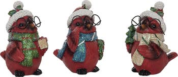 - Charming set of 3 resin cardinal figurines perfect for adding a festive touch to your holiday decor.